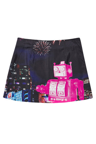 CLASSIC SILK SUMMER MINI SKIRT FEATURING OUR SIGNATURE DIGITALLY PRINTED JAPAN CITY FABRIC