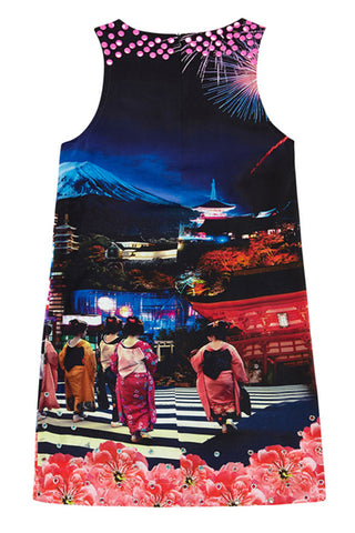 SILK TANK DRESS FEATURING OUR SIGNATURE DIGITALLY PRINTED JAPAN CITY FABRIC.
