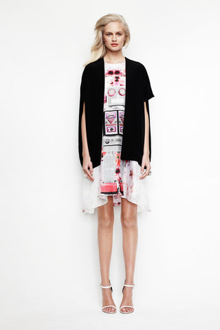 SILK SHORT KIMONO STYLE JACKET FEATURING OUR SIGNATURE BLACK CREPE DE CHINE FABRIC