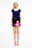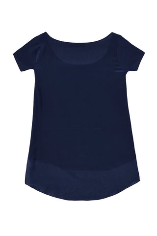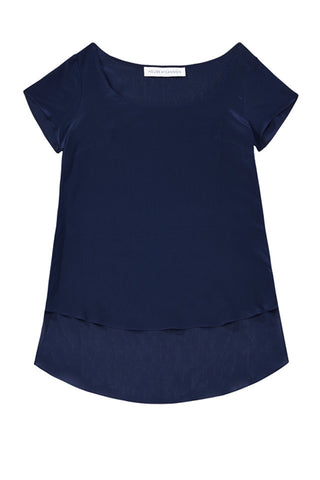 100% SILK T-SHIRT FEATURING OUR SIGNATURE NAVY CREPE DE CHINE FABRIC.