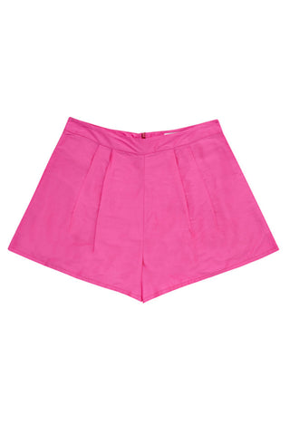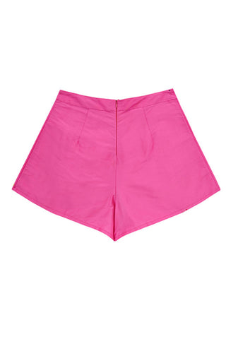CLASSIC HIGHER WAIST SILK SHORTS WITH POCKETS FEATURING OUR SIGNATURE BUBBLE GUM PINK TAFFETA FABRIC